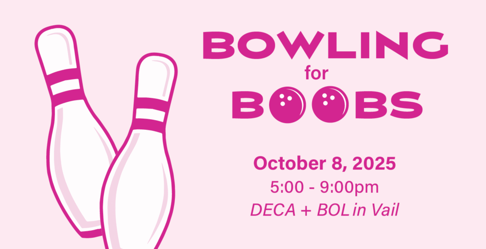 Join us on Wednesday, October 8, 2025 for Bowling for Boobs, a lively fundraising event at DECA+BOL in Vail. This event, held during Breast Cancer Awareness Month, promises an evening of friendly competition, delicious food and beverages, and a silent auction — all to support a great cause. Funds raised will directly benefit the Vail Breast Cancer Group, a subgroup of the Vail Valley Charitable Fund, dedicated to supporting individuals diagnosed with breast cancer.