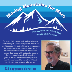 Family and friends will come together on Friday, May 5, 2023, at the Eagle-Vail Pavilion from 5 pm to 9 pm to raise funds for Dr. Marc Peck and his wife, Judy.